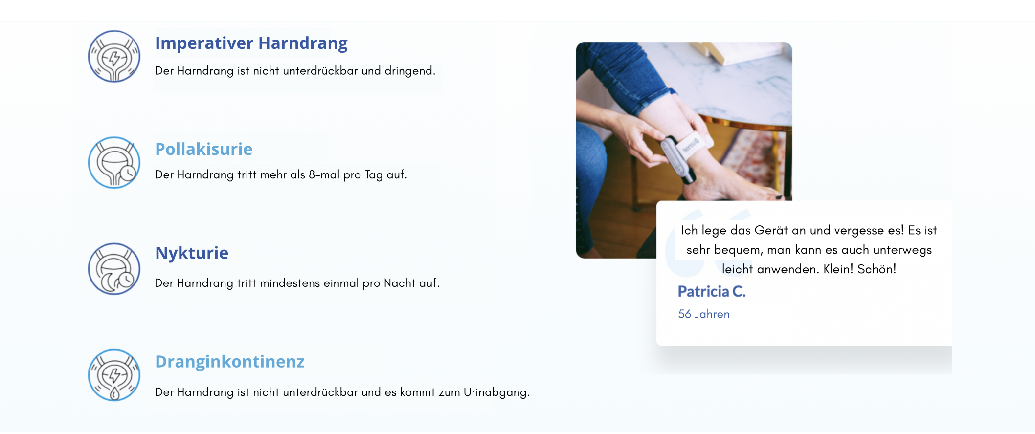 Tensi + ist eine nicht medikamentöse, nebenwirkungsfreie und nichtinvasive Therapie zur Behandlung einer idiopathisch oder neurologisch bedingten überaktiven Blase.